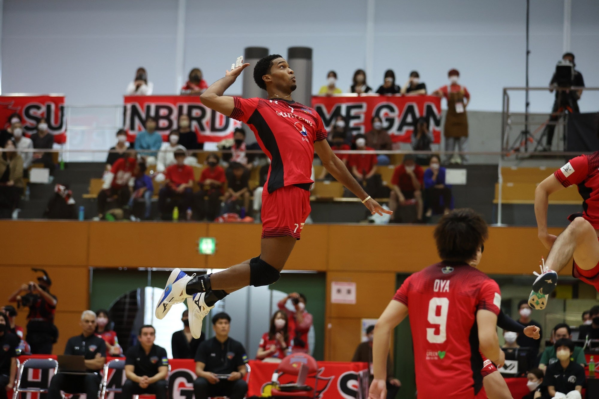 今季初勝利をホームで飾ったPFUキャプテンアコスタロスランディのアタック 対トヨタ車体 第1セット