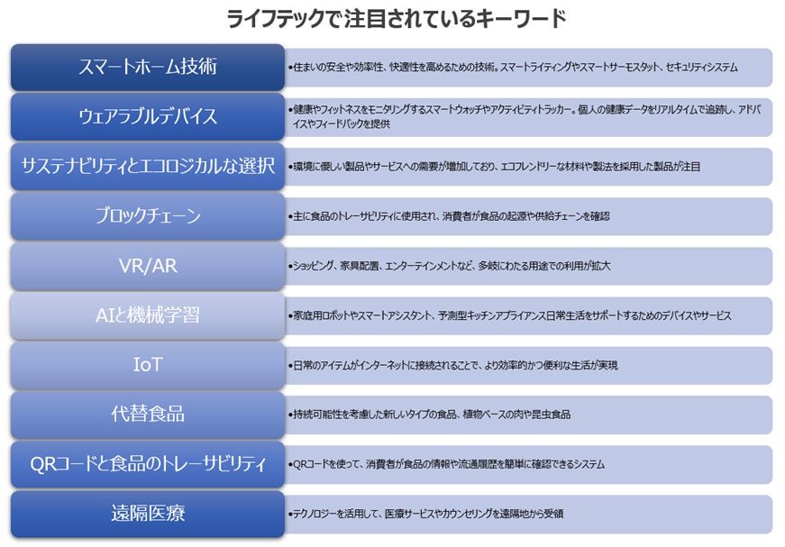 こうした背景により、ライフテックは日常生活の様々な面での解決策や価値を提供する分野として急速に成長してきました。