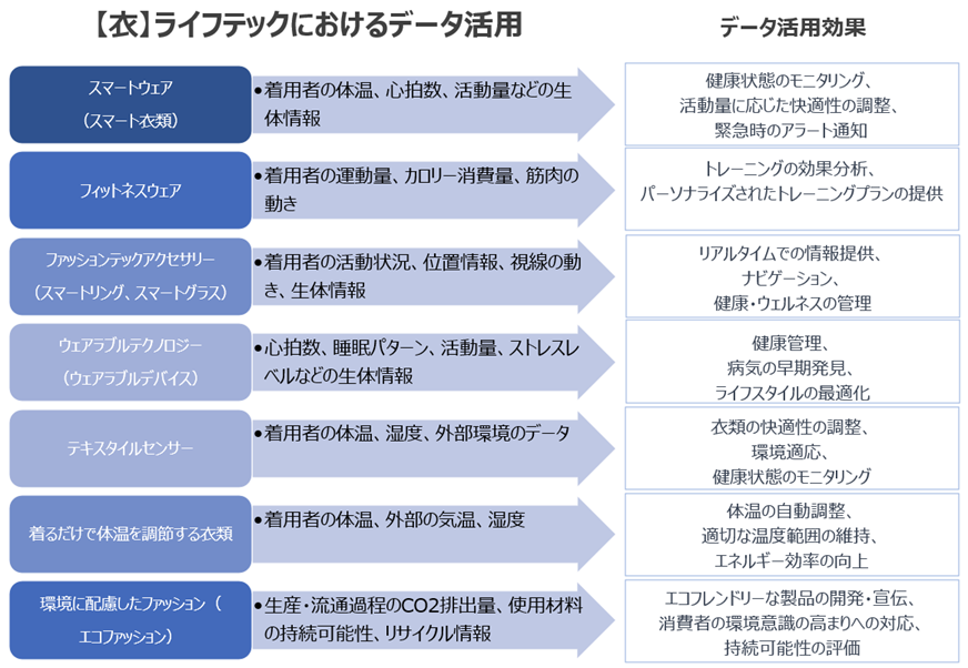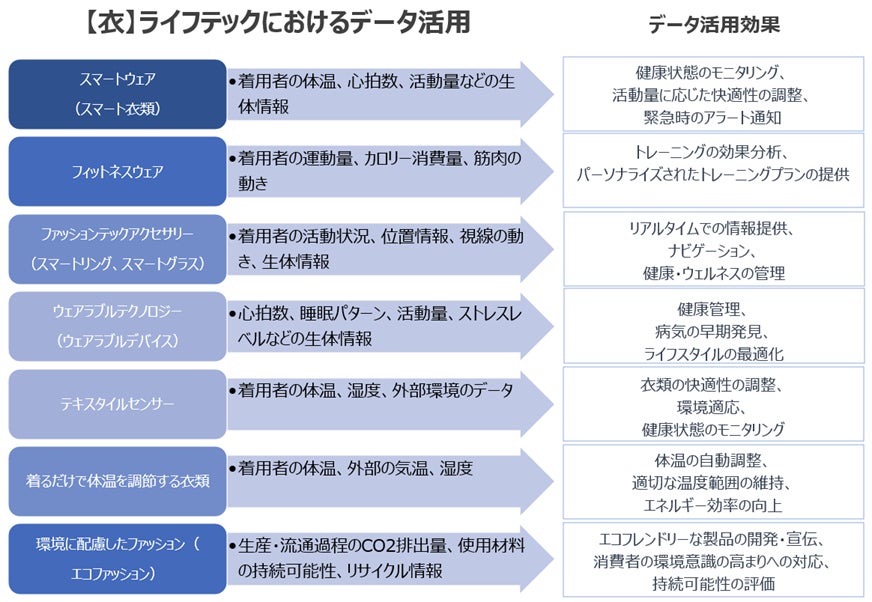 近年、ライフテック業界は急速な進展を遂げており、その中心にあるのがデータの利活用です。データプラットフォームの導入は、衣・食・住という私たちの日常生活の三要素に深く関連する多くの技術やサービスの発展を促進しています。特に、AI技術の進化とデータ収集の容易さが融合することで、従来とは一線を画する革新的なサービスやプロダクトが登場しています。これは、消費者のニーズや嗜好をリアルタイムで把握し、それに応じたカスタマイズされた提案やサービスを可能にすることで、より質の高いライフスタイルを実現するドライバーとなっています。衣から住まいまで、私たちの生活のあらゆる面で、この技術革命は深い影響を及ぼしており、その実例をいくつか挙げてみましょう。