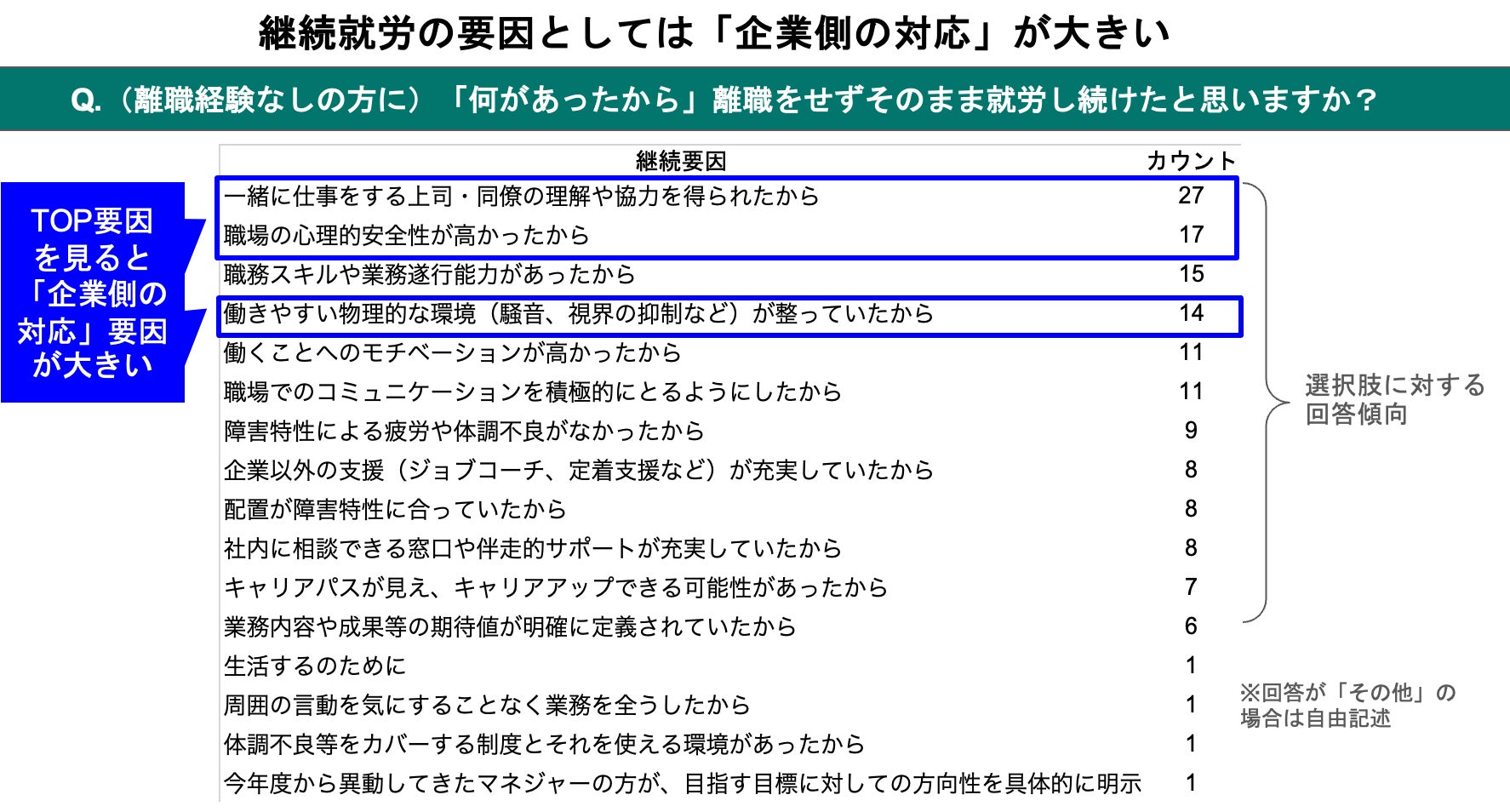 (示唆:継続就労のトップ要因は“誰と働くか”)