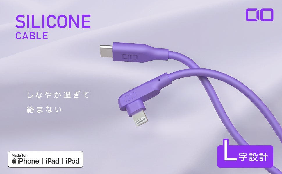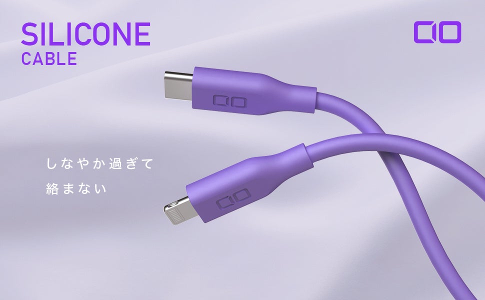 しなやかなシリコン素材&急速充電ケーブル『CIO-CL30000』シリーズは肌触りに優れた柔軟なシリコン素材ながらも、30000回の折り曲げテストをパスするなど高耐久かつ急速充電に対応した新感触の充電ケーブルです。Lightning搭載ケーブルはApple MFi認証を取得しているため、iPhoneやiPad等に最適に動作し、OSのアップデート後も安心してご使用いただけます。