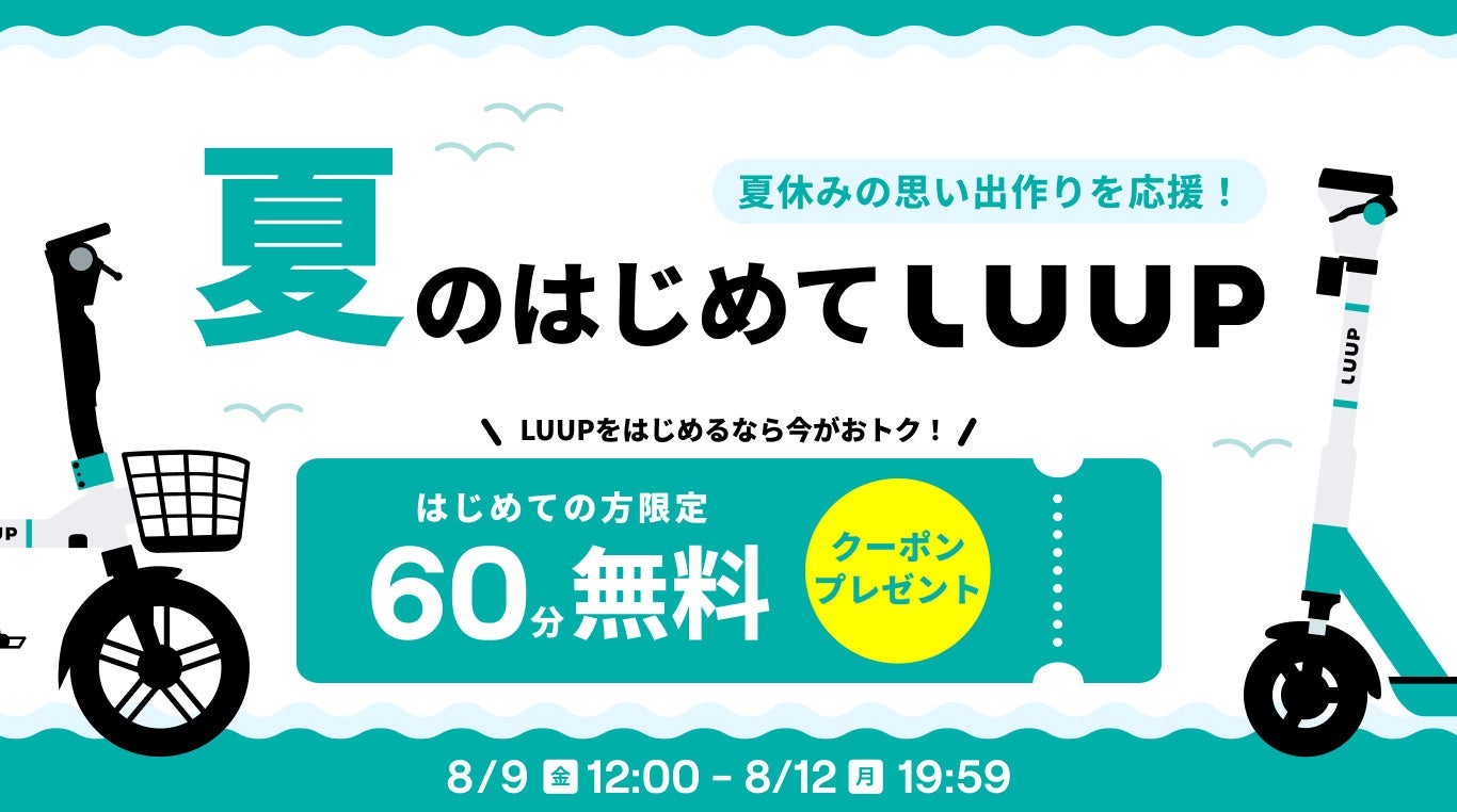 8月9日(金)から8月12日(月)まで、初めてのライドが60分無料になる「夏のはじめてLUUP」キャンペーン開催