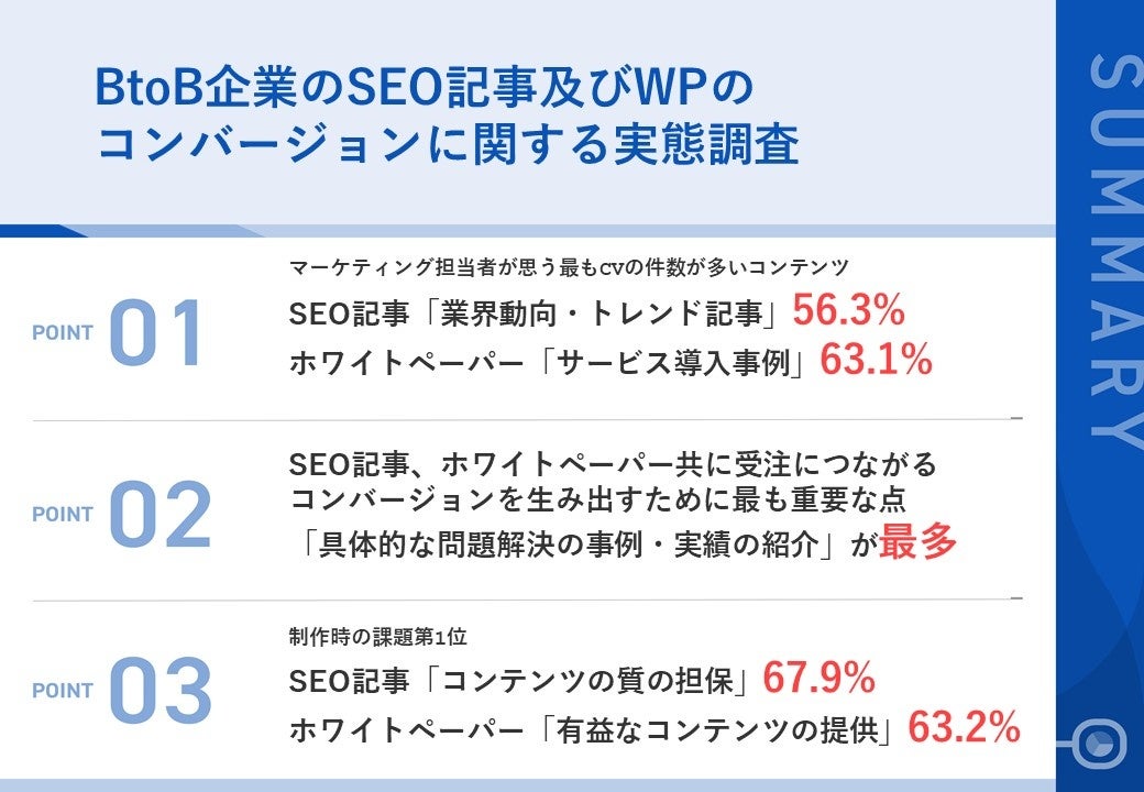 【BtoBマーケティングにおけるSEO記事とWPの実態】担当者が答える、最もCVを生むSEO記事は「業界動向・トレンド記事」が56.3%で最多!WPの第1位も発表