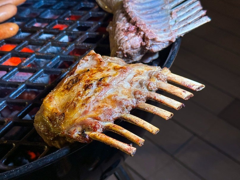 寿司屋台とグリヤードでご用意する握り寿司の数々と骨付き仔羊、鴨胸肉、もとぶ牛、オマ