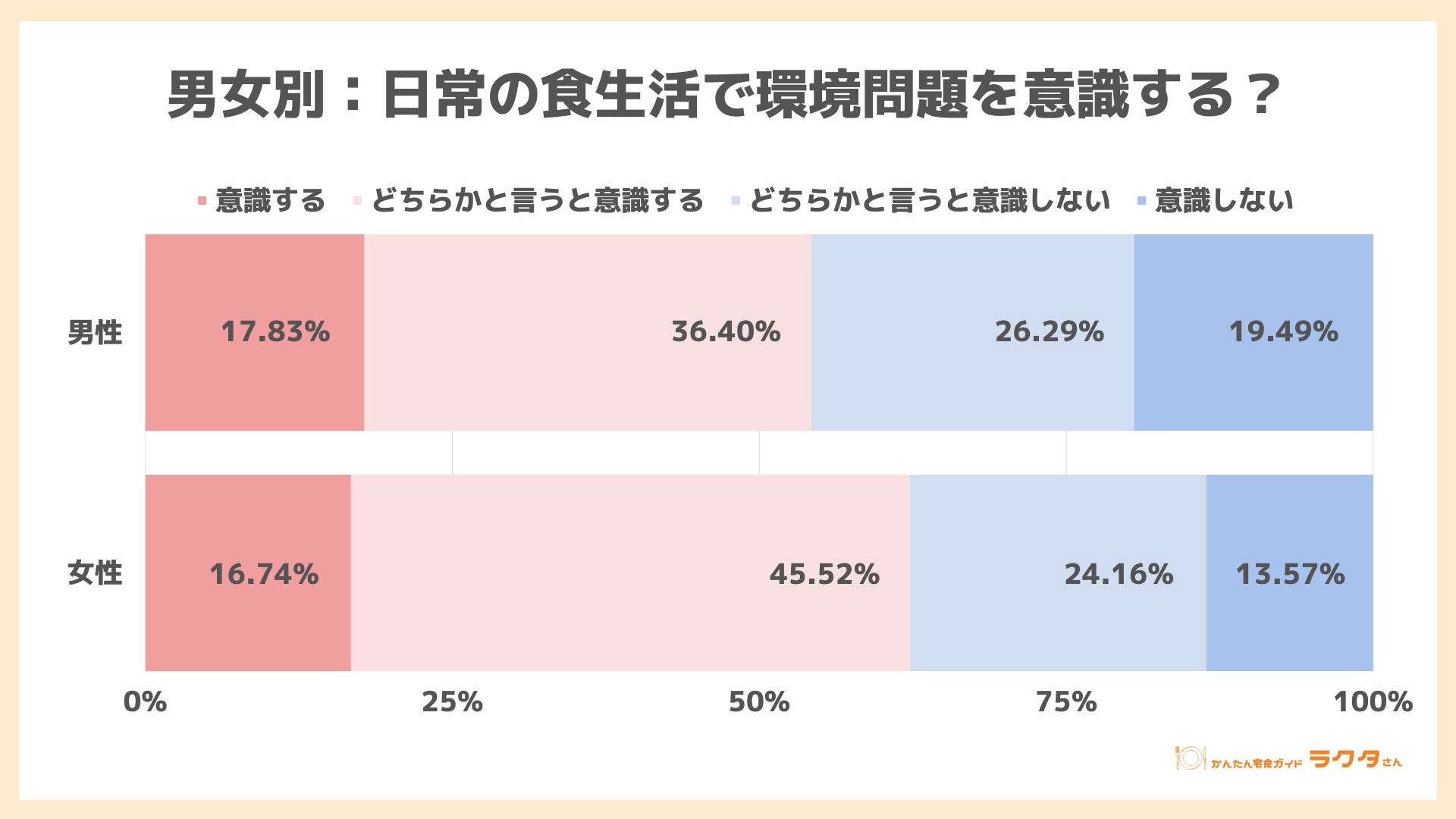 ■過半数が日常の食生活のなかで環境問題を意識 女性の関心がより高い傾向