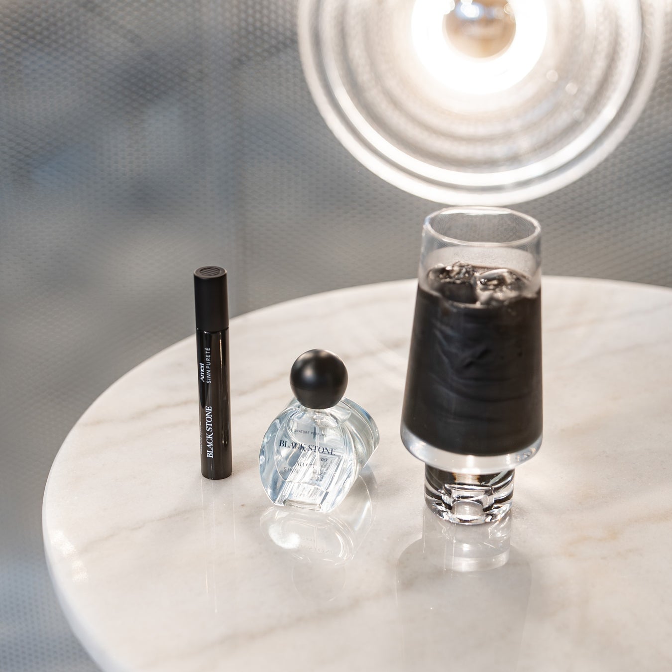 コラボ限定フレグランス“BLACK STONE”の香りに呼応するオリジナルドリンクを、表参道の人気カフェTHE CAFE by cadet.にて発売いたします。イギリス発の世界的ライフスタイル・ブランド TOM DIXONの上質なデザインで造られた照明やインテリア空間で、没入感溢れる至福な体験を。ぜひお楽しみください。