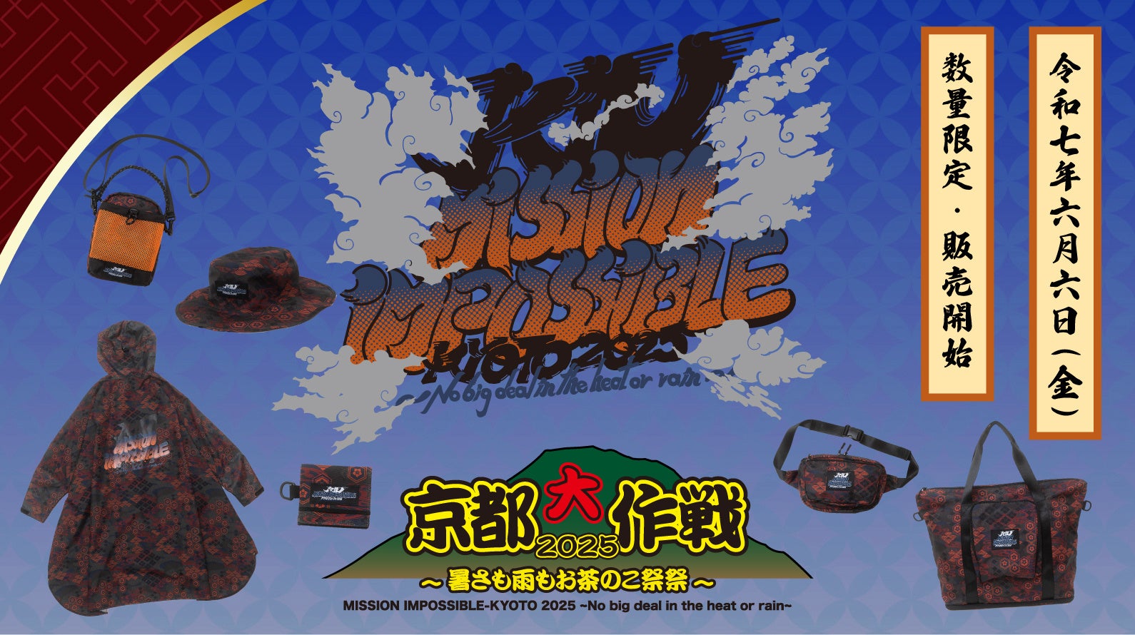 株式会社ワールドパーティー(本社:大阪市住吉区、代表取締役社長:冨田智夫)が展開するアウトドアアクティビティブランド『KiU(キウ)』は、10-FEET主催の夏の音楽野外フェス 『京都大作戦2025〜暑さも雨もお茶のこ祭祭〜』とコラボレーション。京都大作戦の今後の繁栄を願い、京都伝統の和柄をデザインソースに描き下ろした特別なアイテムを、2025年6月6日(金)午前10時より、KiU公式オンラインショップ、一部取扱店舗にて販売を開始いたします。