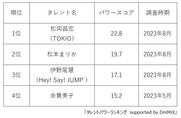 「タレントパワーランキング supported by DmMiX」である旨を明記