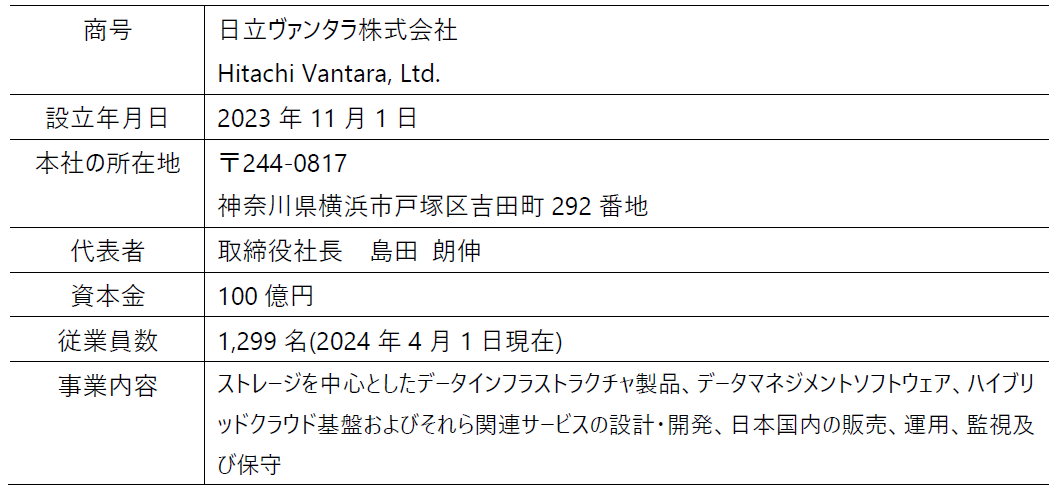 日立ヴァンタラ株式会社(取締役社長:島田 朗伸/以下、日立ヴァンタラ)は、このたび、ストレージやサーバーなど、データインフラストラクチャ*1に関する開発・生産を担ってきた株式会社日立製作所(以下、日立)のITプロダクツ事業部門を吸収分割により承継し*2、2024年4月1日付で営業開始しました。