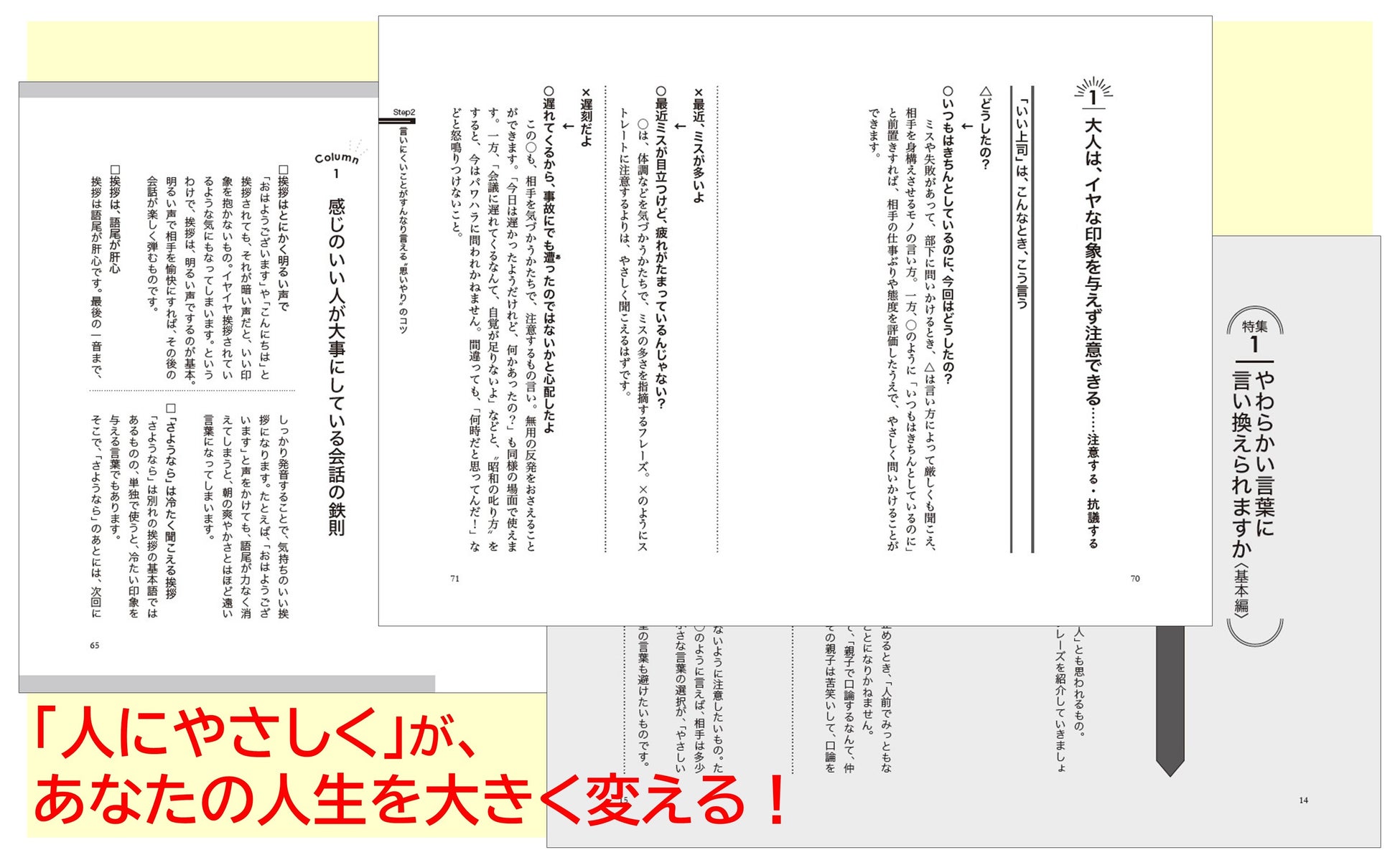 本書で紹介した”思いやり”のある、やさしいモノの言い方を、職場や学校、家庭など、いろいろな場所で、お役立てください。人に”思いやり”のある言葉をかければ、あなたの人生が大きく変わりはじめるはずです。