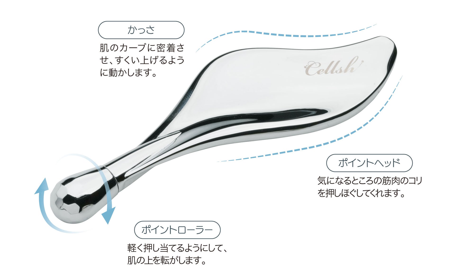 肌にすべらせて流す・ほぐす・転がしてスッキリ!