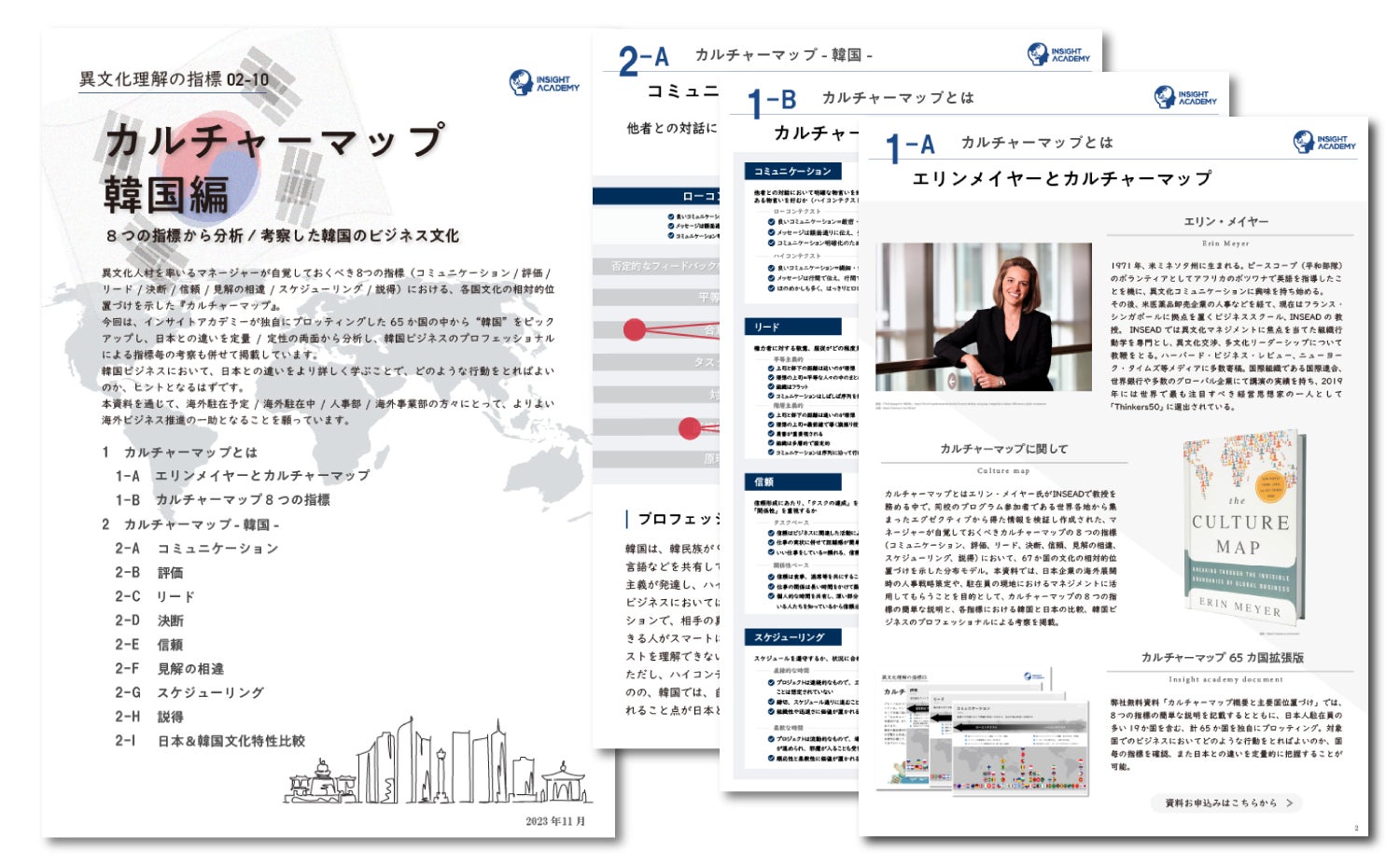 異⽂化理解のフレームワーク「カルチャーマップ」から“韓国”をピックアップし、8つの指標を説明するとともに、日本との違いを定量/定性の両面から分析し、韓国ビジネスのプロフェッショナルによる8つの指標毎の考察を盛り込んでいます。