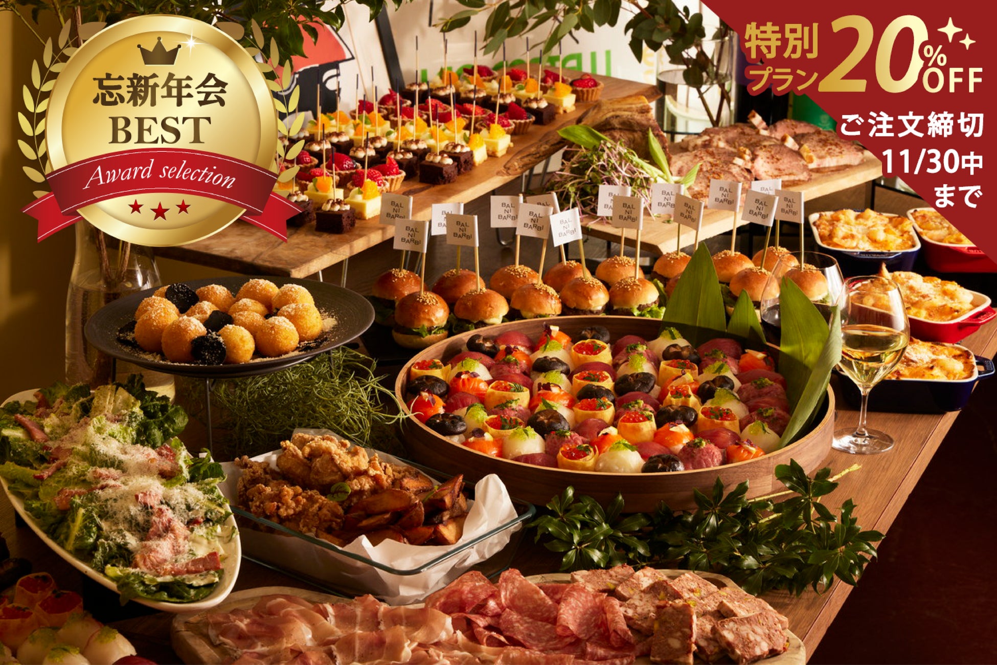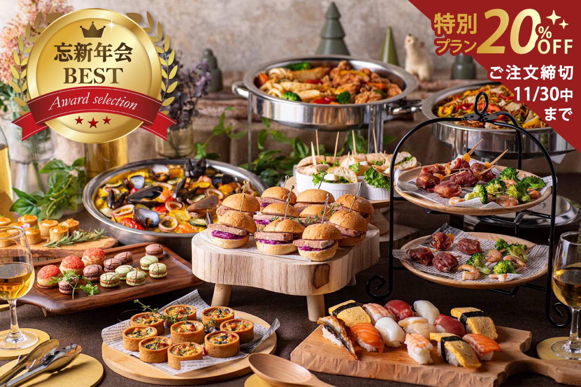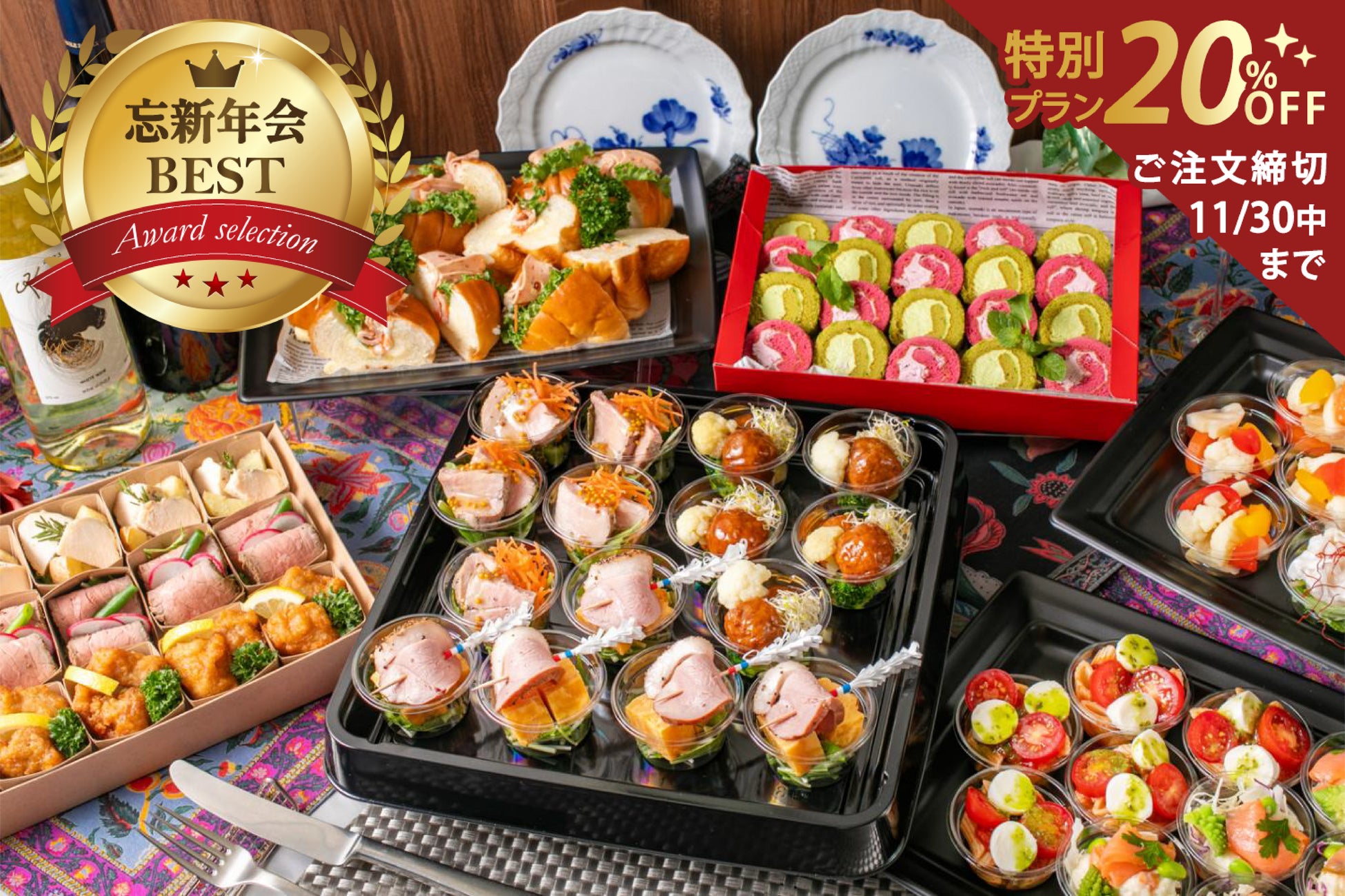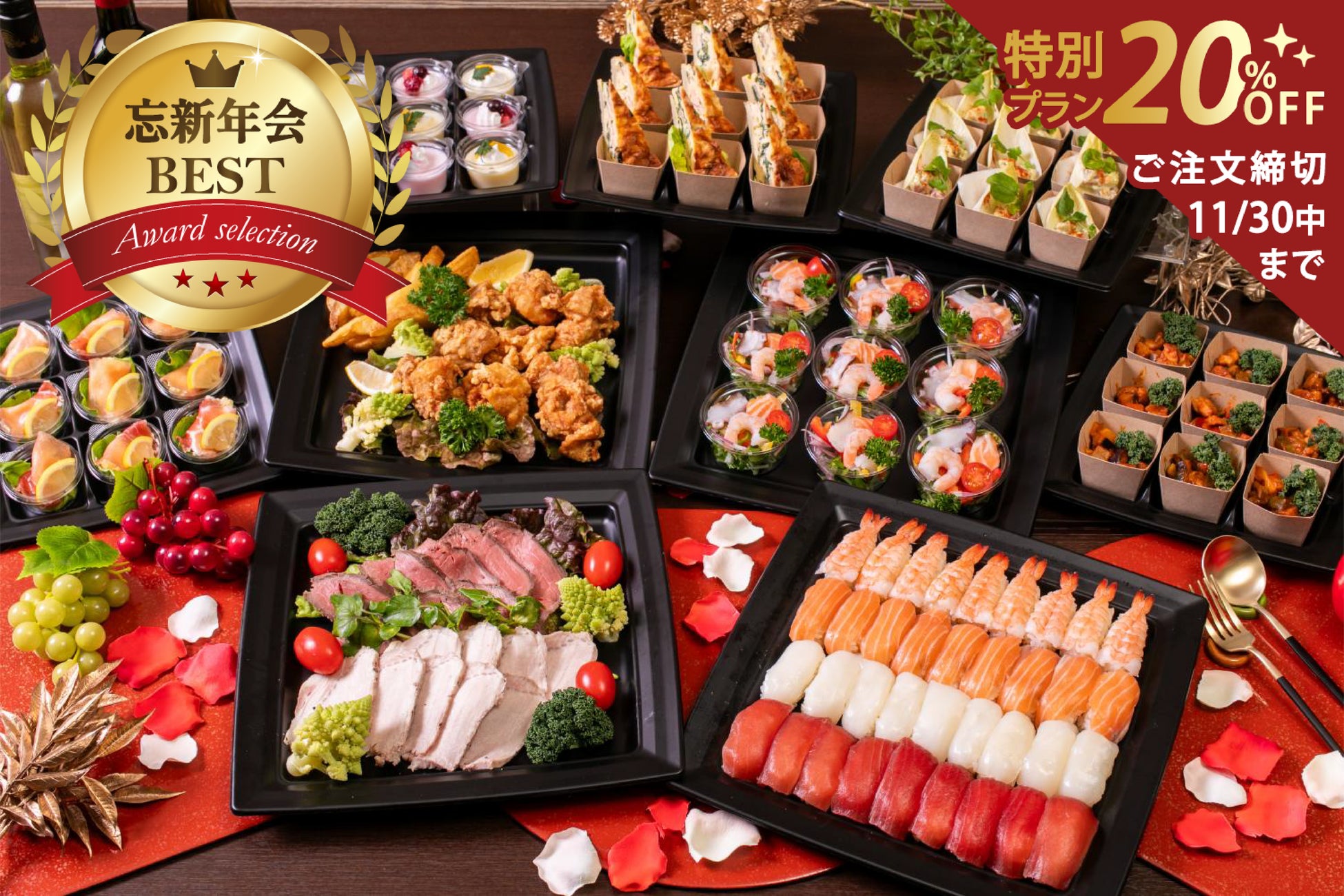 ケータリングセレクションでは、期間限定で忘年会・新年会の対象プランを20%OFFでご用意しております。