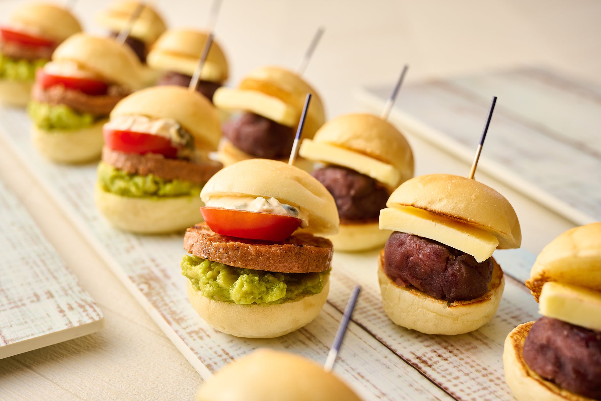 大豆をお肉に見立てたソイミートパティとアボカドディップ、トマトをサンド。隠し味にピリリと辛みをきかせた京漬物のオリジナルソースが味を引き立てます。