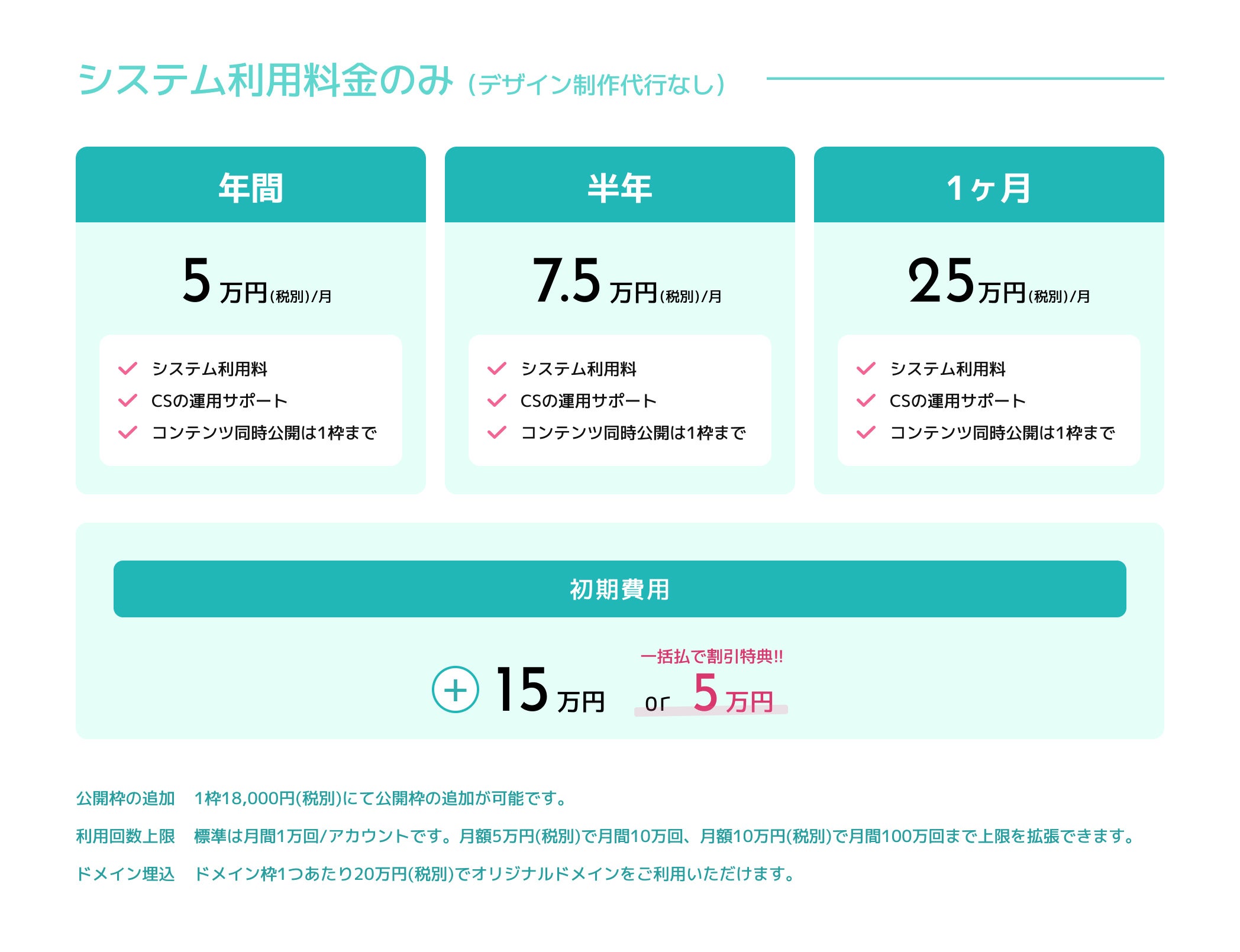 含まれるもの:システム利用料/CSの運用サポート/公開枠は1枠まで