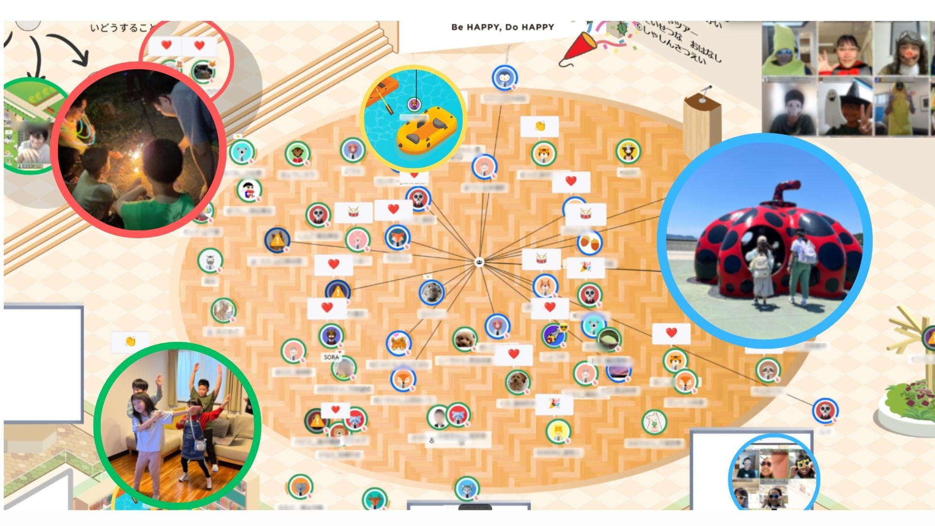 福山市内3か所にあるフリースクール「かがやき」に通室する小中学生は、それぞれの通室先よりNIJINアカデミーの活動に参加します。「かがやき」から帰宅した後は、各家庭の端末よりNIJINアカデミーの対話的で双方向型のオンライン授業に参加することができます。