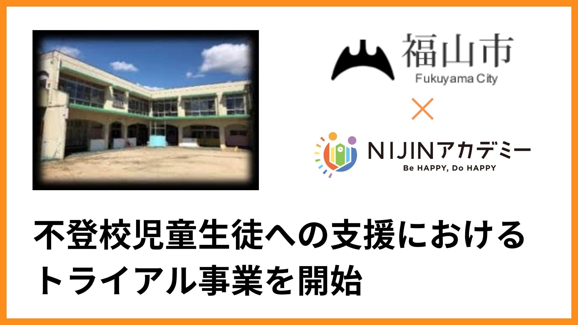 株式会社NIJIN(本社:東京都江東区、代表取締役:星野達郎)が運営する不登校オルタナティブスクール「NIJINアカデミー」は、広島県福山市教育委員会と連携し、10月中旬より福山市の不登校の小中学生への支援においてトライアル事業を行います。数か月間のトライアルを通して、福山市の不登校の小中学生に対し、居場所作りや教科教育を行い、当該児童生徒の活動参加の継続率や支援のニーズ、メタバースの教育効果を検証します。