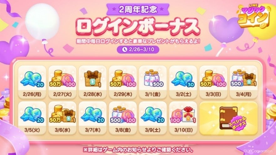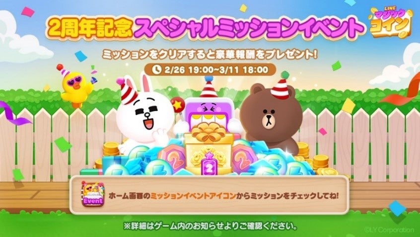 LINEヤフー株式会社は、当社が展開するカジュアルコインゲーム「LINE マジックコイン」(iPhone・Android対応/無料)が2024年2月28日にサービス開始から2周年を迎えることを記念し、本日より記念イベントを開始します。