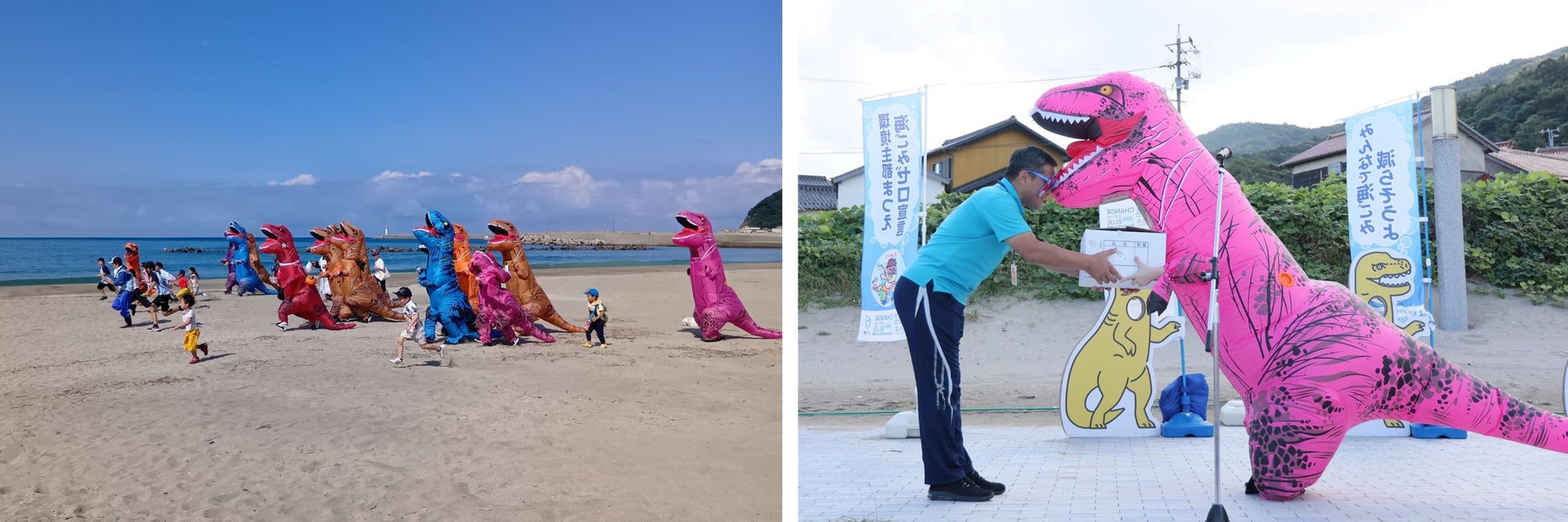 ・開催概要 :海洋環境の悪化に怒りを募らせた恐竜たちが古浦海水浴場に上陸!人類が恐竜を迎え撃った本イベントは、海岸清掃をより多くの人に興味を持ってもらおうと開催しました。