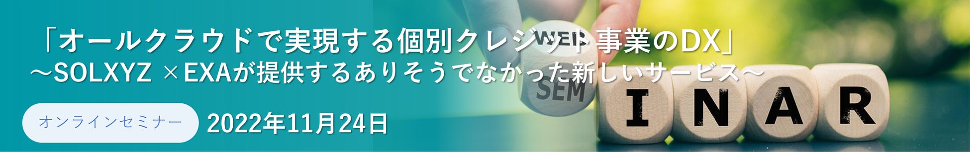 本セミナーでは、個別クレジット事業のリーンスタートを目指す企業向けに、クラウトネイティブ時代におけるソルクシーズとエクサの個別クレジットシステムをご紹介いたします。