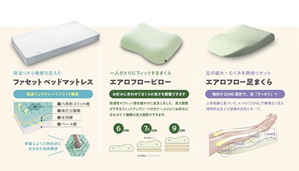 ・「カラーフォーム」ブランドの寝具3点(ファセットベッドマットレス、エアロフローピ ロー、エアロフロー足まくら)の体験