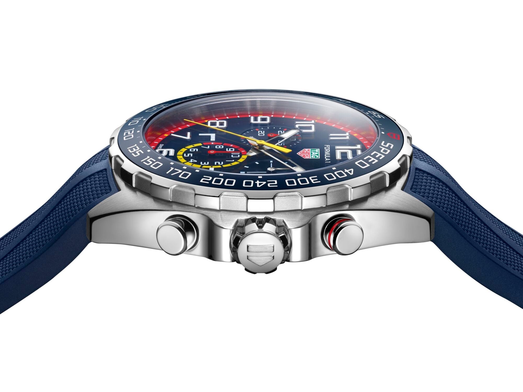 このスペシャルエディションの製作に当たって、タグ・ホイヤーのデザイナー陣は、レッドブル レーシングチームと緊密に連携し、F1チームの全てのグラフィックコードを使用し て独自のタイムピースを共同製作しました。