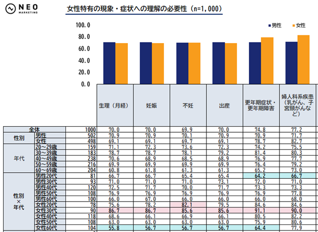 ■女性特有の現象・症状への理解の必要性(n=1,000)