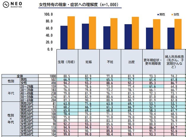 一般社団法人日本フェムテック協会と生活者起点のリサーチ&マーケティング支援を行なう株式会社ネオマーケティング(所在地:東京都渋谷区)は2022年11月8日(火)~2022年11月9日(水)の2日間、全国の20歳以上の男女を対象に「ウィメンズヘルスリテラシーの実態把握」をテーマにインターネットリサーチを実施いたしました。