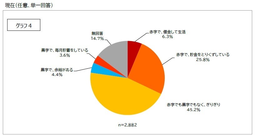 【2】 被災前と現在で、家計が赤字の子育て世帯が7.4%から32.1%へ4 倍以上に増加