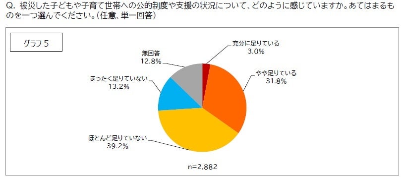 【3】 被災した子どもや子育て世帯への公的制度や支援について、半数以上が足りていないと回答
