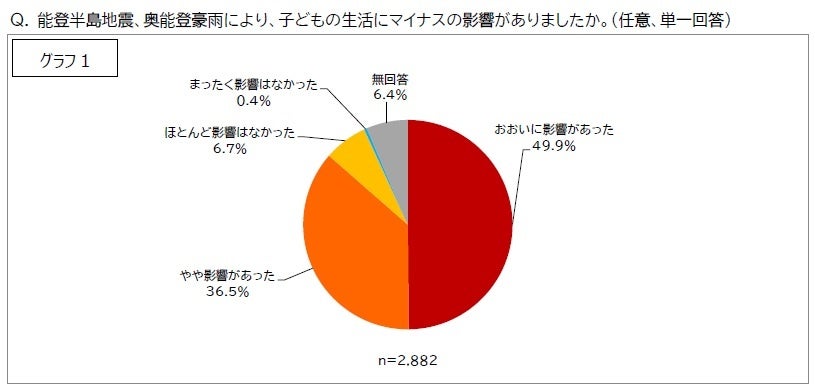 【1】 8割以上の子育て世帯が能登半島地震、奥能登豪雨により、子どもの生活にマイナスの影響があったと回答