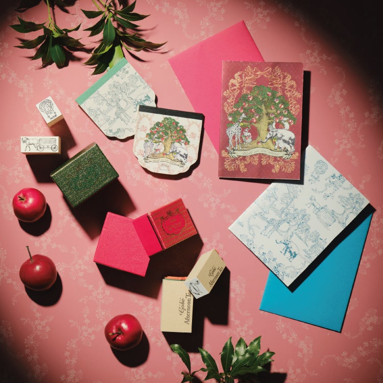 スタンプ3点セット ¥3,300、スタンプ2点セット ¥3,080、メモセット ¥1,100、メッセージカード 各¥715