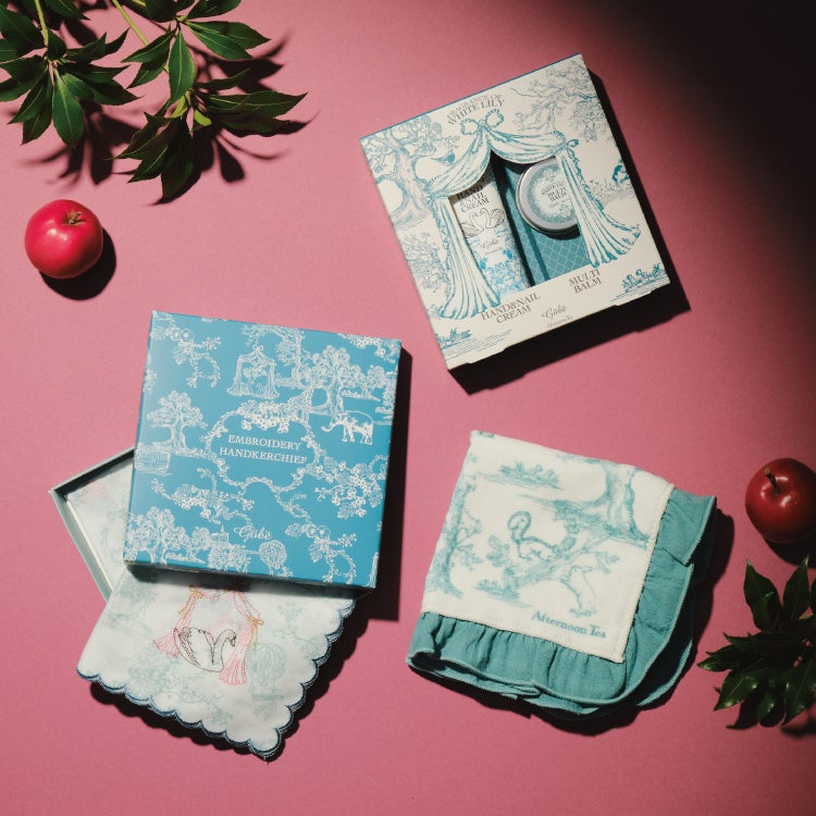 ハンカチ ¥3,300、ハンドセラムセット ¥1,980、フリルミニタオル ¥990