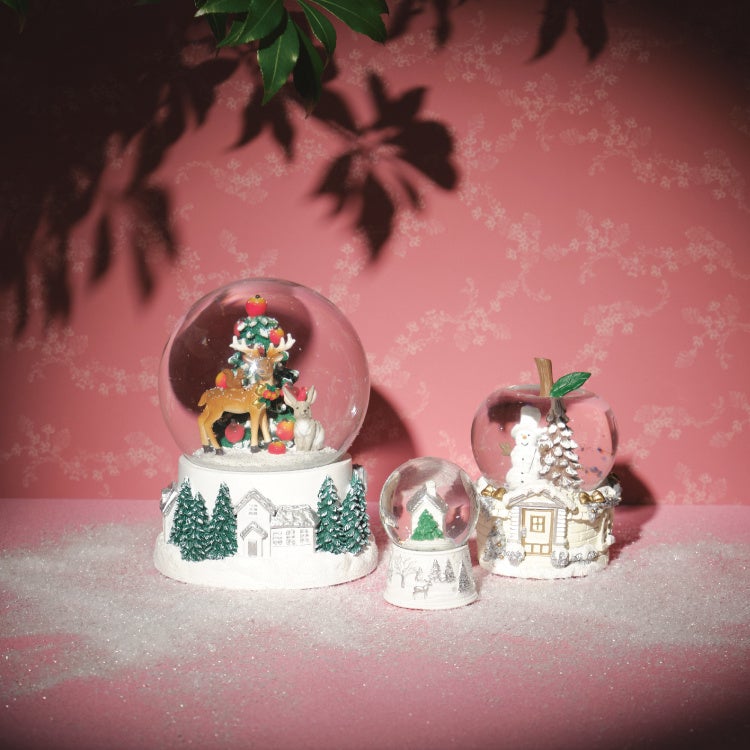 スノードーム(ツリー・動物) ¥4,950、スノードーム(ハウス) ¥990、アップルスノードーム ¥2,640