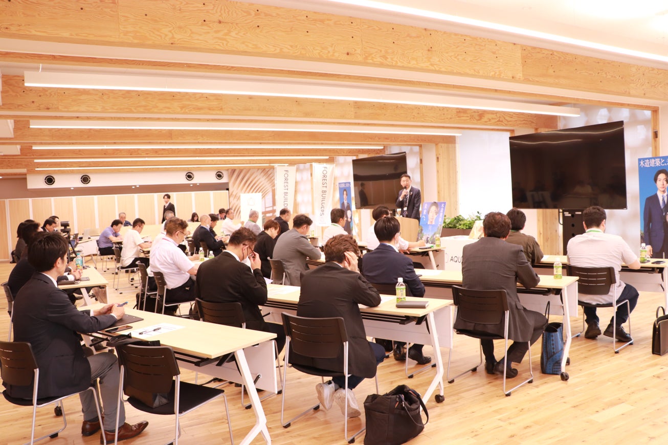 株式会社AQ Group(本社:埼玉県さいたま市西区、代表取締役社長:加藤 博昭)が主導する「フォレストビルダーズ」は6月6日、全国各地の総合建設会社などを対象に「建設新時代を勝ち抜く『二刀流』経営セミナー」を開催しました。日本最大級の木造建築集団を目指す「フォレストビルダーズ」は、国内における4階建て以上の中大規模建築物のほとんどが非木造であり、木造建築企業にとってブルーオーシャンであることに着目。集まった建設会社に「建設新時代が到来している」、「鉄筋コンクリート造も木造も建てられる“二刀流”が新時代を勝ち抜く経営戦略である」と訴えました。