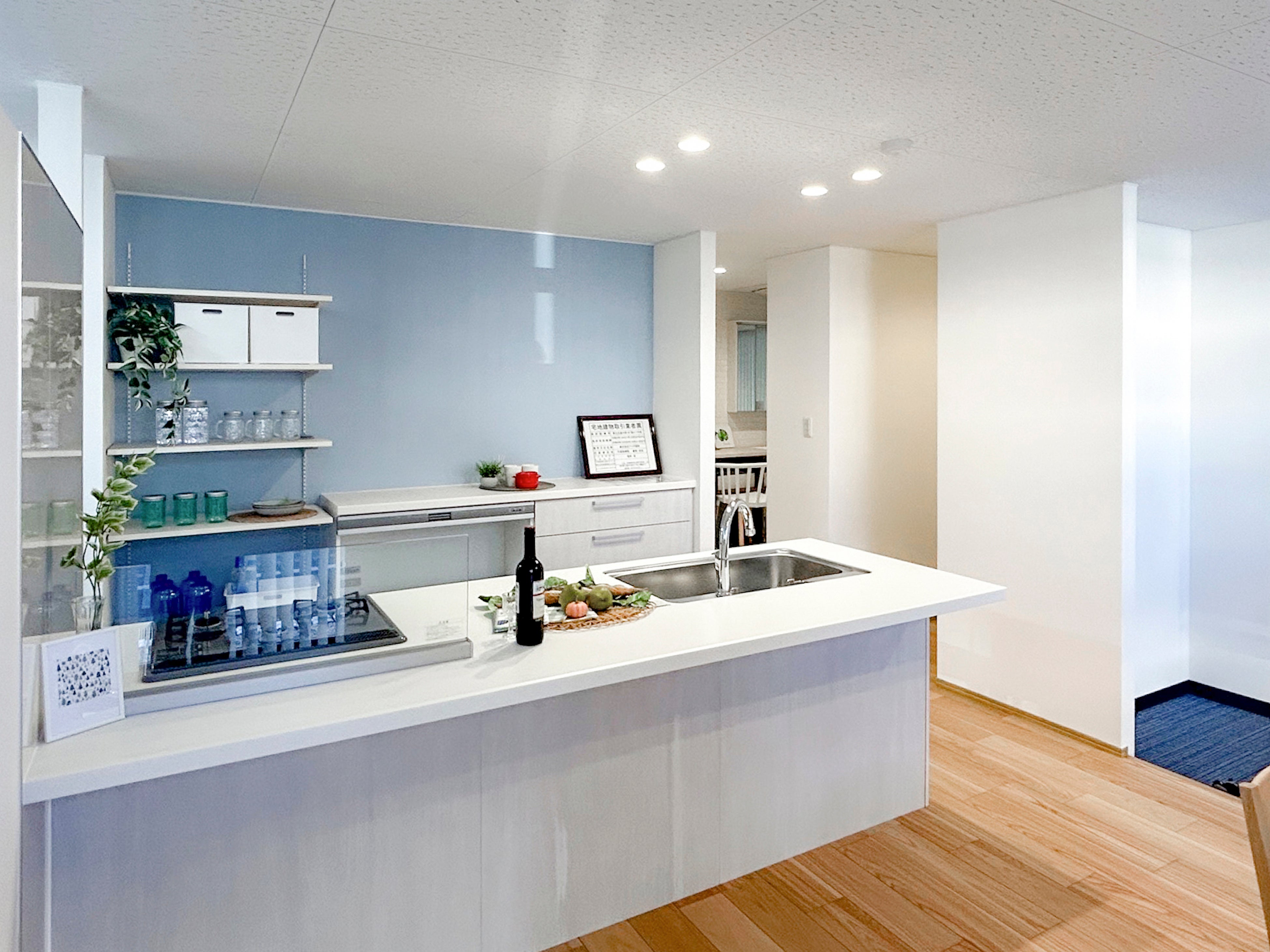 「岡山店」は、最新の住宅設備や内装建材を展示したショールーム型の店舗です。キッチン・バスルーム・洗面化粧台などを実際に見て、触れて、その機能性やデザイン性を体感いただき、理想の住まいをより具体的にイメージしていただける空間となっております。店内には、打ち合わせスペースのほか、小さなお子様連れでも安心してご来店いただけるキッズスペースをご用意しております。