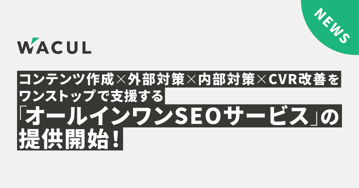 こうした背景から、WACULは自社ブログ「AIアナリストブログ」で得た「勝ちパターン」と、記事公開後3か月以内に55%がGoogle検索結果で10位内を獲得するコンテンツを生み出す「AIアナリストSEO」を大きくアップグレード。オウンドメディアの運用やSEO施策に悩みを抱えるビジネスオーナーやマーケティング担当者に向けて「コンテンツ作成×外部対策×内部対策×CVR改善」の全方位をサポートが可能する、オールインワンSEOサービス「AIアナリストSEO」としてサービスを大幅にアップグレードし、提供することとしました。
