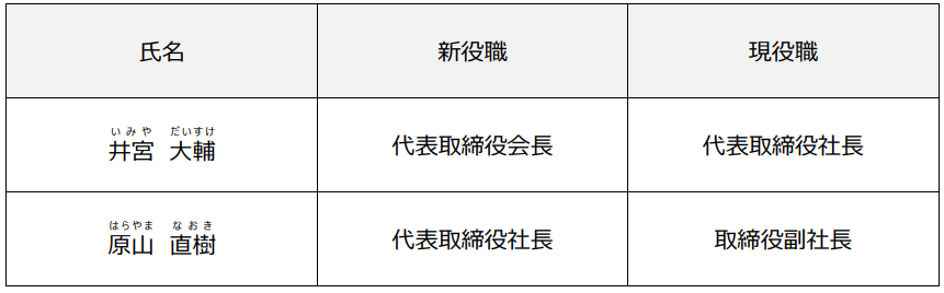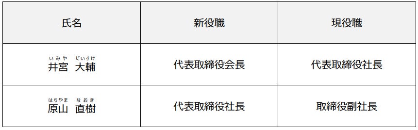 本日開催の取締役会において、下記のとおり代表取締役の異動について決議いたしましたので、お知らせいたします。