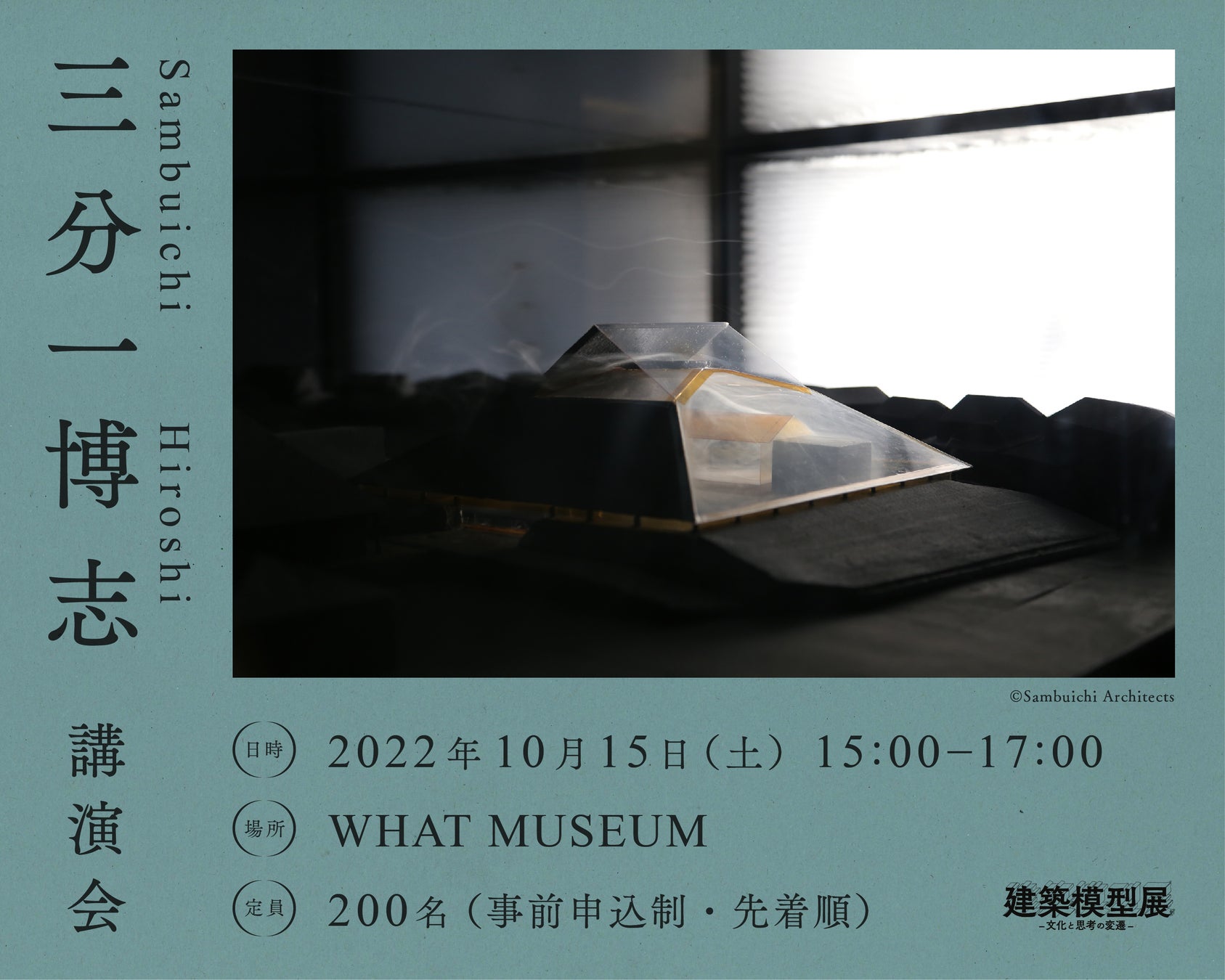 寺田倉庫株式会社(東京都品川区 代表取締役社長:寺田航平)が運営する現代アートのコレクターズミュージアム「WHAT MUSEUM(ワットミュージアム)」は、現在開催中の「建築模型展 -文化と思考の変遷-」関連イベントとして、瀬戸内を拠点に活躍する建築家・三分一博志氏による講演会を2022年10月15日(土)15:00より開催いたします。