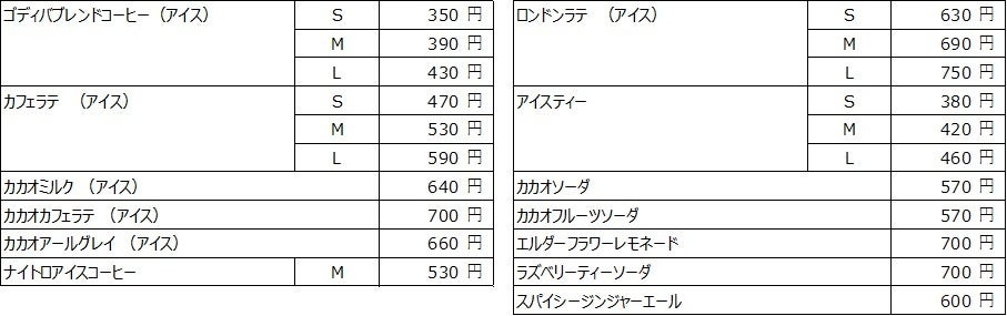 (各店舗の所在地、営業時間等については、https://www.godiva.co.jp/cafe/をご参照ください)