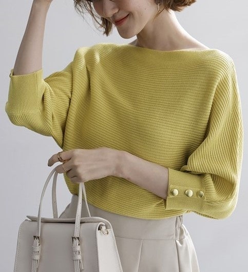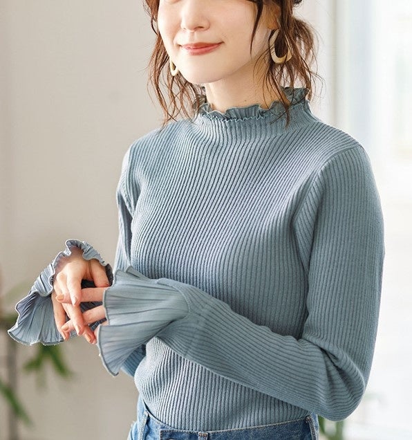 ■特長:各3種類の素材とネックラインを展開し、全7タイプから選べるリブニットトップス。重ね着アイテムとして、いつものコーデにプラスしても着られます。大人かわいい袖口がポイントです。
