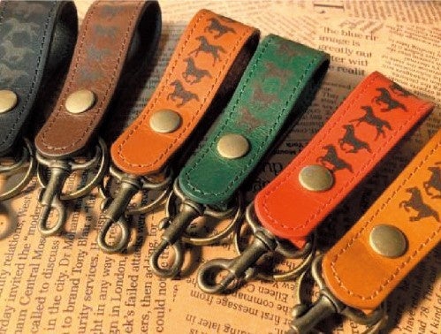 ⑥元騎手が手掛けるオーダーメイド革工房「Bull’z-F(ブルズエフ)」の「馬九いく(うまくいく)キーリング」(ペア)