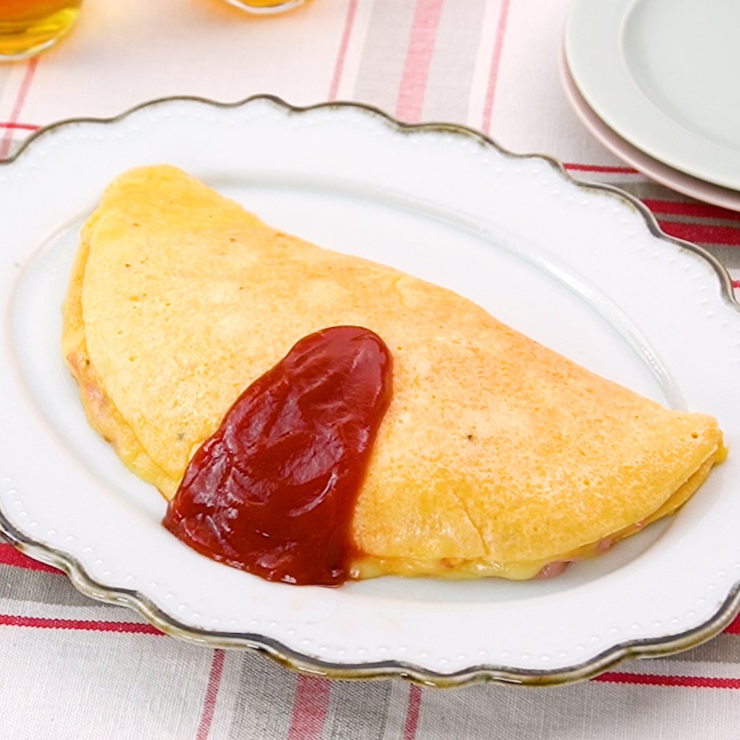 昨年Instagramで130万回以上再生された「もちもちフレンチトースト」をヒントに考案したおかずレシピで、チーズとハムの塩気が味のアクセントになります。オムレツのマンネリ脱却にぜひ試してみてはいかがでしょうか。