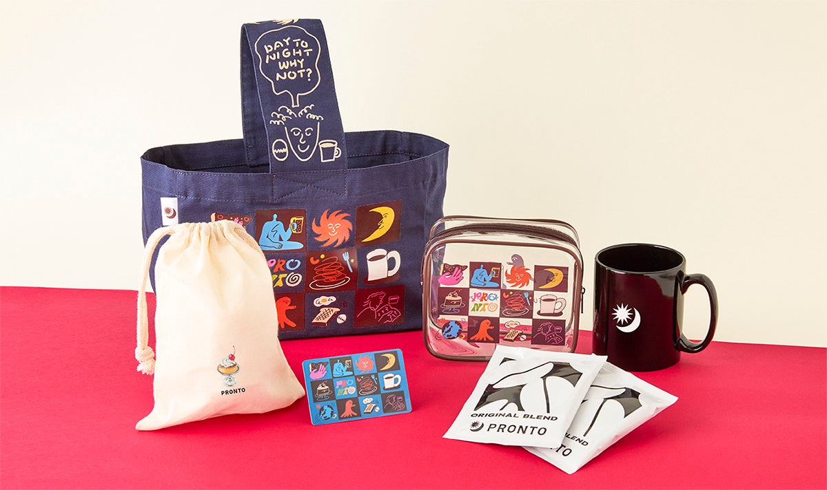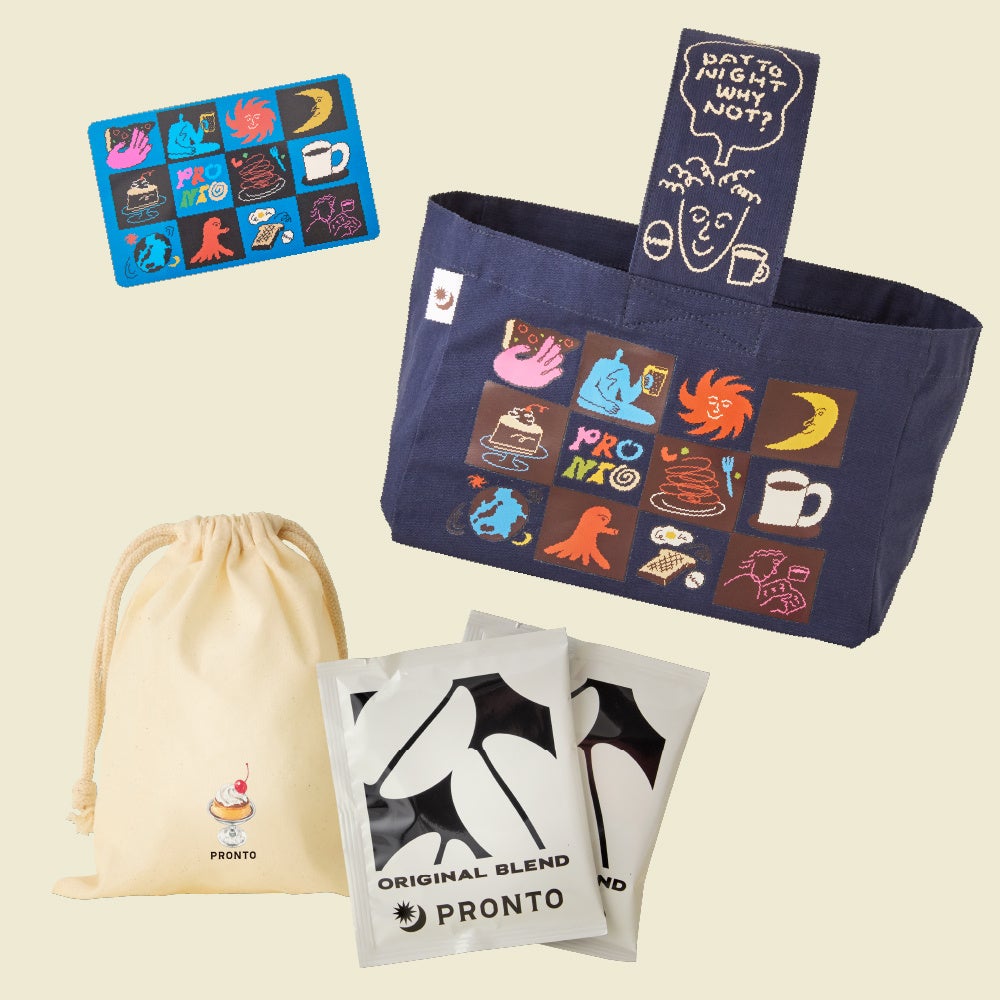 『PRONTO』では、2026年1月1日(木)より「福袋2026」を発売します。『PRONTO』の「ドリップコーヒー オリジナルブレンド」や「オリジナルマグカップ」「オリジナル巾着」の他、人気イラストレーター/アーティストのnorahi(ノラヒ)氏によるオリジナルデザインのトートバッグやクリアポーチ、プロントマネーギフトカード(※)をセットにした福袋です。『PRONTO』から連想されるイメージ をモチーフに、オリジナルのイラストを描き下ろしていただきました。
