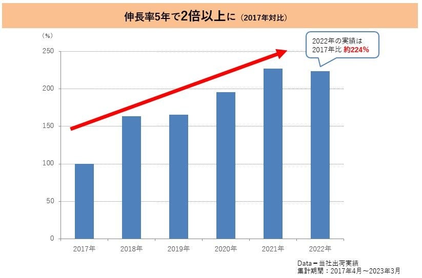 2022年の実績は2017年対比で約224%、伸長率は5年で2倍以上となり、好調に推移しています。ストレートつゆの市場規模拡大とともに、素材にこだわったにんべんゴールドシリーズ ストレートタイプの人気も高まり、ご家庭でお楽しみいただいているようです。そこで、ゴールドシリーズのストレートタイプから今回新商品を発売することにいたしました。