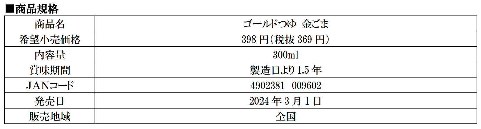 素材とだしにこだわった好評のゴールドシリーズより「ゴールドつゆ金ごま300ml」3月1日新発売