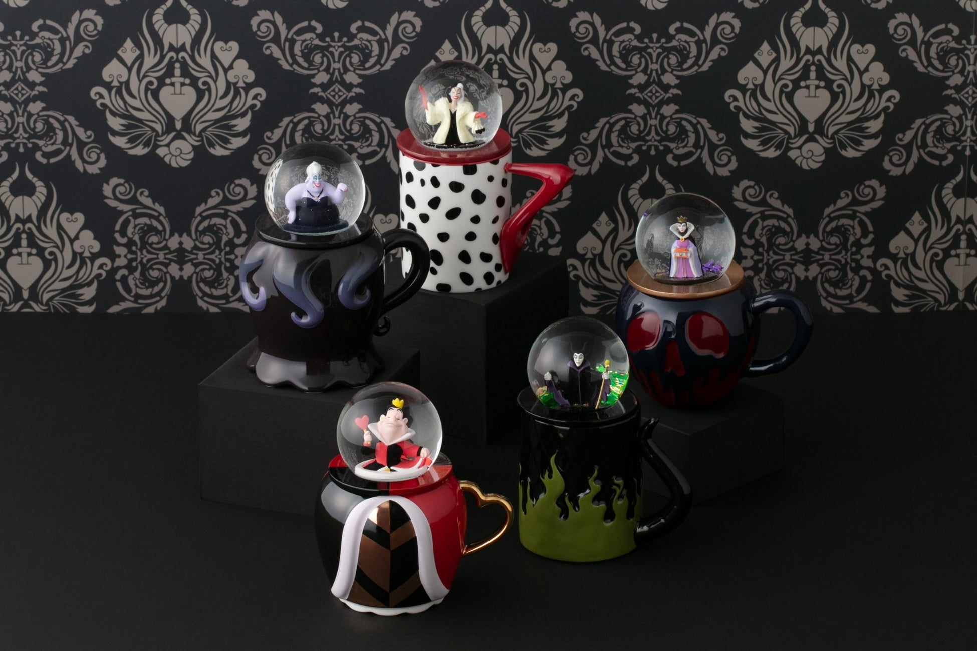 5人のディズニーヴィランズ「アースラ」「クルエラ」「マレフィセント」「エヴィルクイーン」「クイーン オブ ハート」の魅力を詰め込んだスノードームとしても楽しめるマグです。