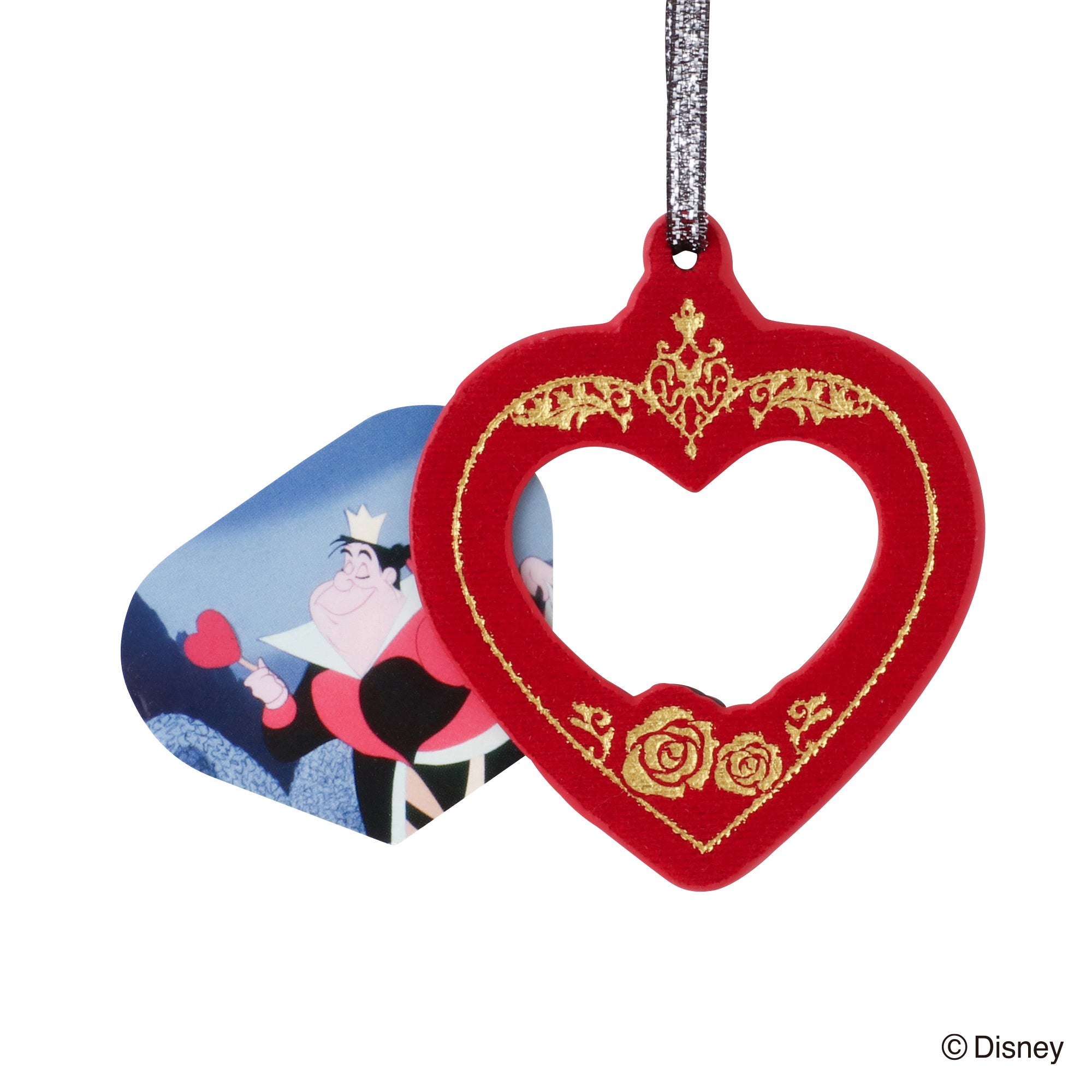 「クイーン オブ ハート」のアイコニックなスカートのデザインを取り入れたマグは底面にもインナーのフリルを思わせる仕様になっている他、取っ手もハート型になっており、アイテム全体でその個性的なキャラクターを表現しています。スノードームには、赤いハートのスパンコールフレークを取り入れているので、スノードームだけでも物語の世界観を楽しむことができます。