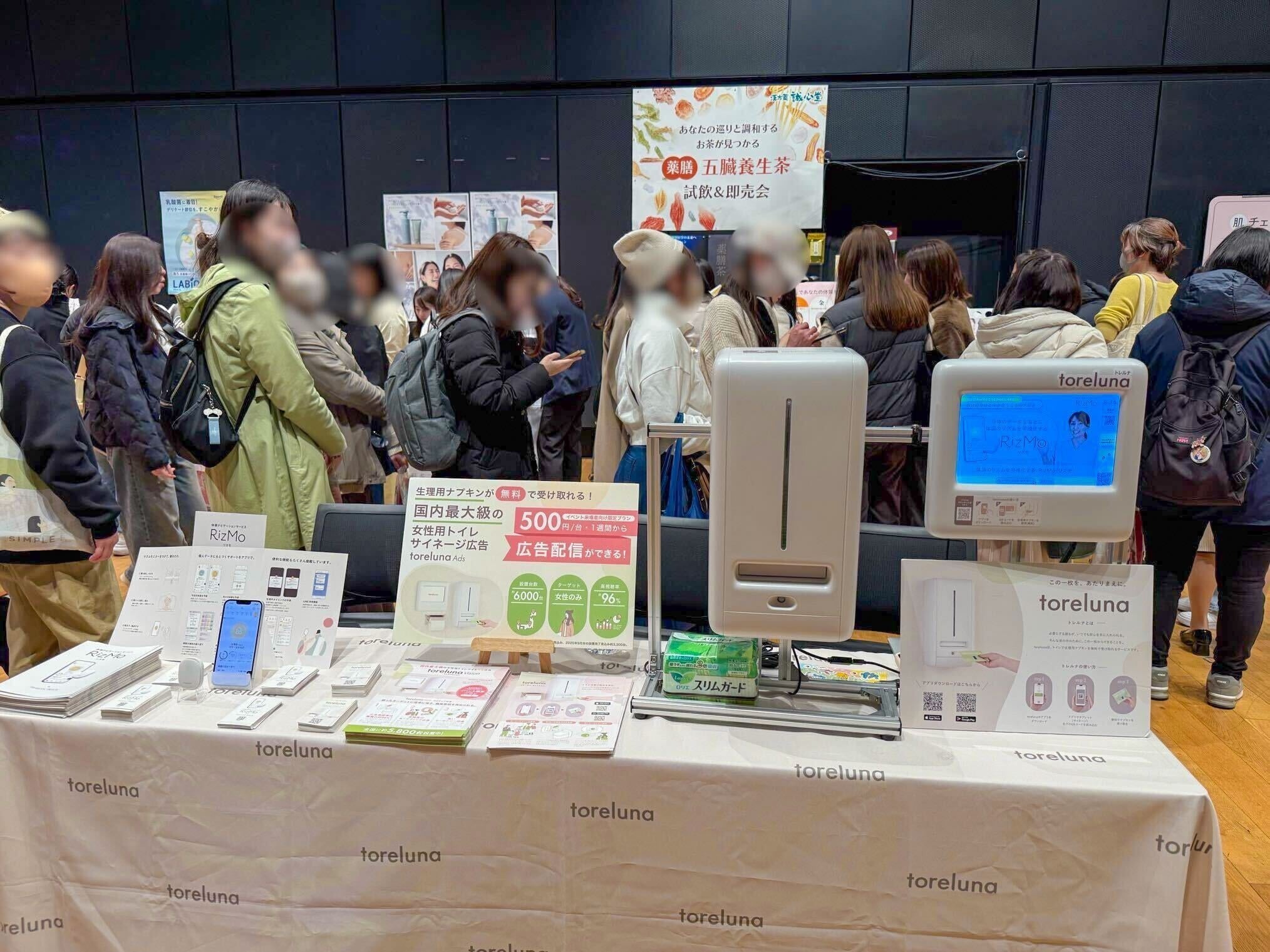 この度、2026年3月6日(金)〜7日(土)に、WITH HARAJUKU HALLにて開催されたミレニアル世代女性のためのエンパワーメントイベント「第6回 WEHealth 2025」にブース出展し、トレルナの実機展示を行いました。来場者には、サービスの仕組みや利用シーンを体験いただくとともに、ナプキンの無料提供を実現する仕組みについても紹介しました。イベントを通じて、トレルナが目指す環境整備の取り組みを広く発信する機会となりました。