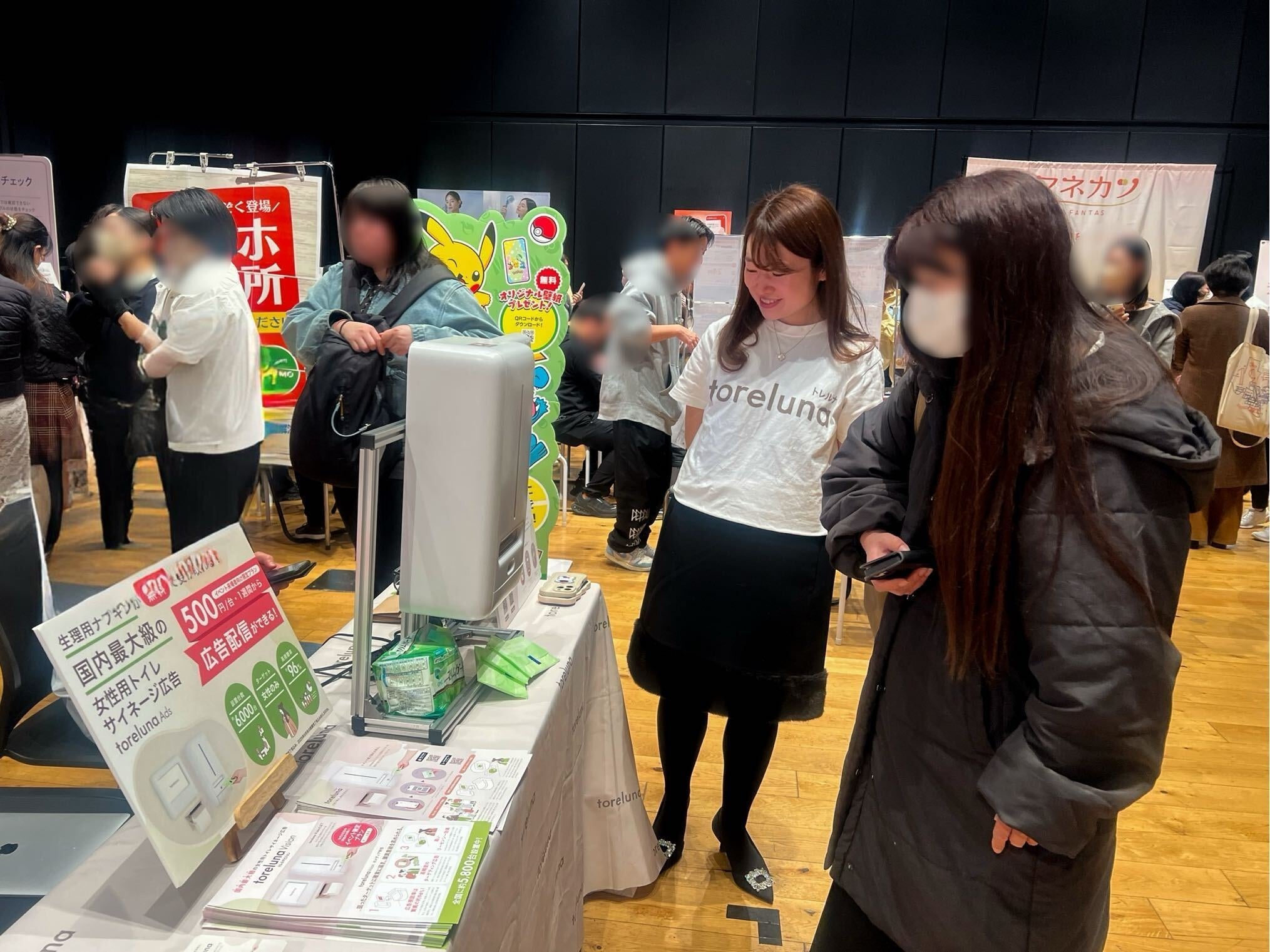 会場では、トレルナの実機に関心の高い方や既にサービスを知って利用している来場者も多く、「もっと多くの施設にトレルナが設置されてほしい」「困ったときにいつもトレルナに助けられている」「突然生理がきたときにトレルナと出会って以来、利用している」といった声が寄せられ、サービスの必要性や期待の高さがうかがえました。ブースでは、実際にナプキンを引き出す体験を通じて、“必要なときにすぐ手に取れる安心感”を体験いただくとともに、パートナー企業の広告出稿費用によりナプキン代が無償化されているトレルナのビジネスモデルについても理解を深めていただく機会となりました。